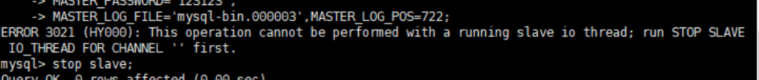 1 | mysql> reset slave; #删除SLAVE数据库的relaylog日志文件,并重新启用新的relaylog文件 |